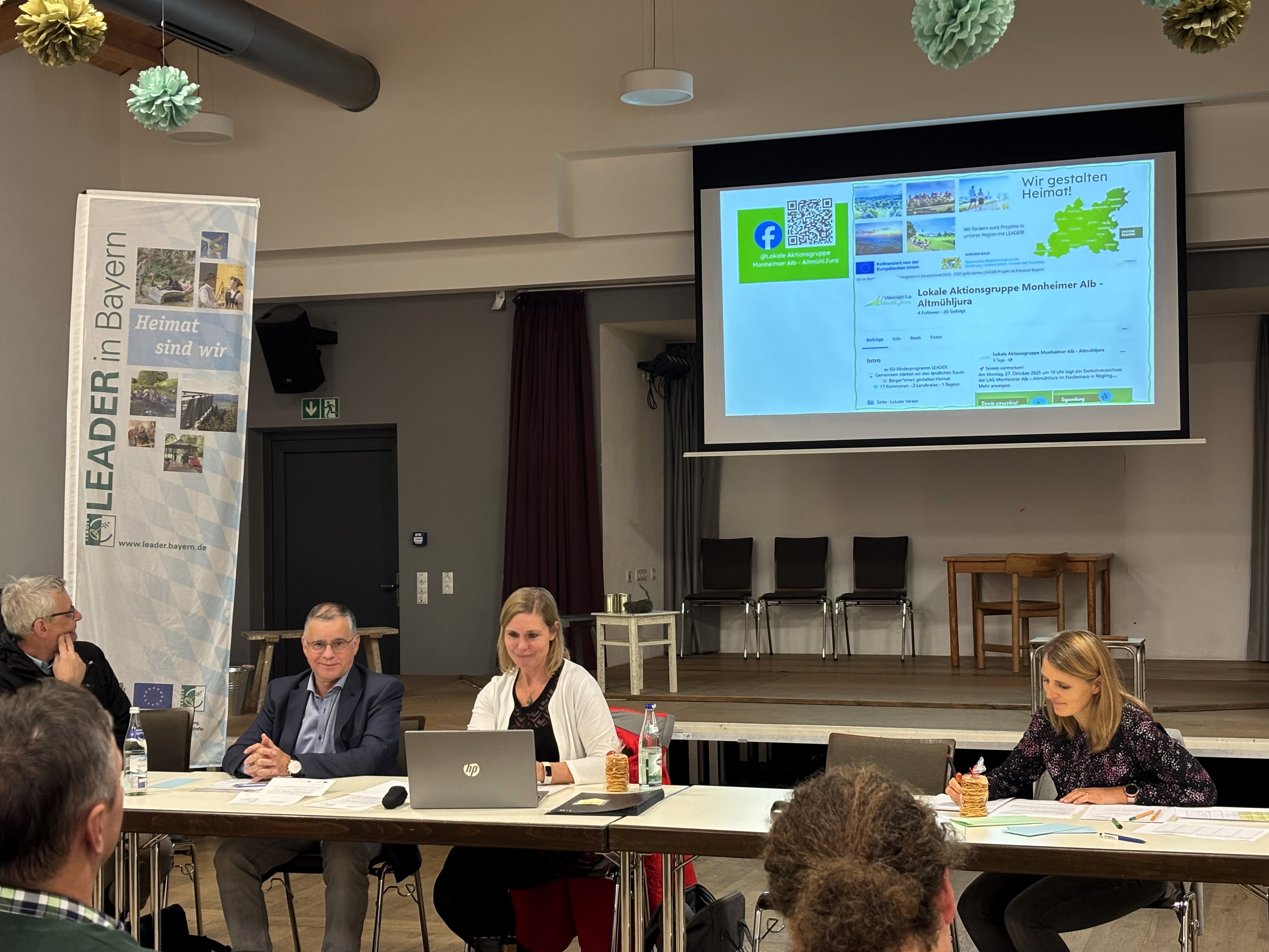 Geschäftsführerin Melanie Pruis-Obel berichtete von weiteren Aktivitäten in den vergangenen Monaten, wie der Übergabe von Förderbescheiden, Austausch innerhalb des LEADER-Netzwerks, Beratungsgesprächen zu verschiedenen Projektideen und einem eigenen Stand bei der Donauries-Ausstellung. Besonders erfreulich: „Die LAG ist inzwischen auch digital bestens vernetzt – unser neuer Instagram-Kanal erreichte innerhalb kurzer Zeit bereits 2.000 Aufrufe.“ Im Bereich Monitoring konnte die Geschäftsführerin Positives vermelden: Noch stehen ausreichend Mittel in allen Entwicklungszielen der LAG für neue Projekte zur Verfügung, doch bis Januar 2027 müsse das Geld über Beschlüsse des Entscheidungsgremiums gebunden sein. „Wer Ideen hat, sollte sich sehr zeitnah bei der Geschäftsstelle melden“, appellierte Pruis-Obel eindringlich an das Gremium.